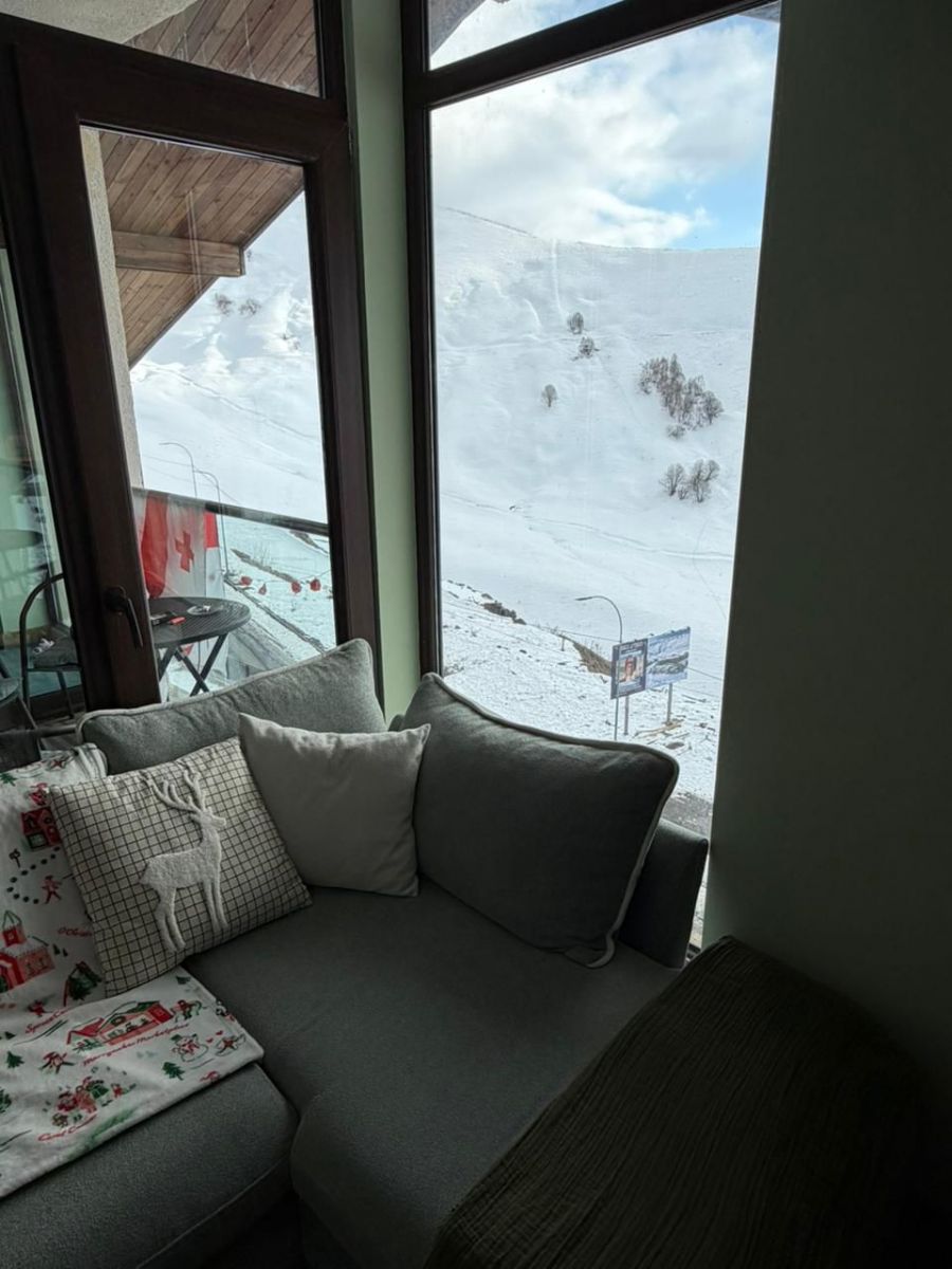 The Loft I-II complex is in New Gudauri, near the gondola ski lift. The complex has many restaurants and bars. Between the two buildings is a pedestrian courtyard with cafes with outdoor tables, ski equipment rentals. There are many apartments with mountain views - the complex is not surrounded by other buildings entirely. There is a reception, ski depo, Wi-FI.