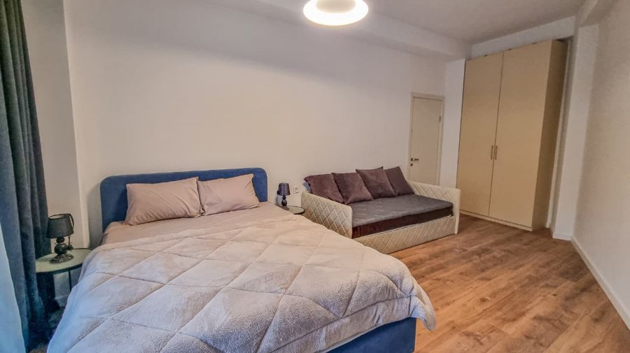 1 room, 1 double bed, 1 sofa bed for one adult, Linen, Towels, Kitchen, Refrigerator, Kettle, Cooker, Microwave, Washing machine, Hairdryer, 1 bathroom with shower and toilet, TV, Non-smoking rooms