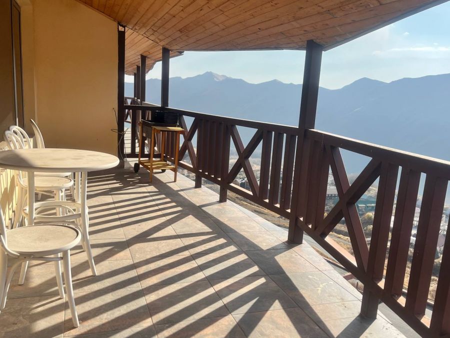 Living room with stunning views over the Aragvi george. Kitchen with all amenities (fridge, cooker, electric kettle), dishes and all utensil for cooking; TV, WI-FI.